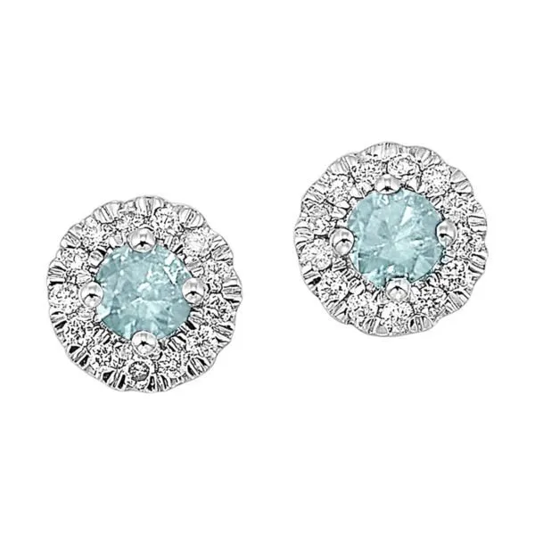 Crafted from premium 10K white gold, these halo stud earrings boast a unique blend of durability and luxurious appearance. The delicate halo design is framed with exquisite round aqua diamonds, totaling 1/10ctw. Each diamond sparkles beautifully, reflecting the light and drawing compliments wherever you go.