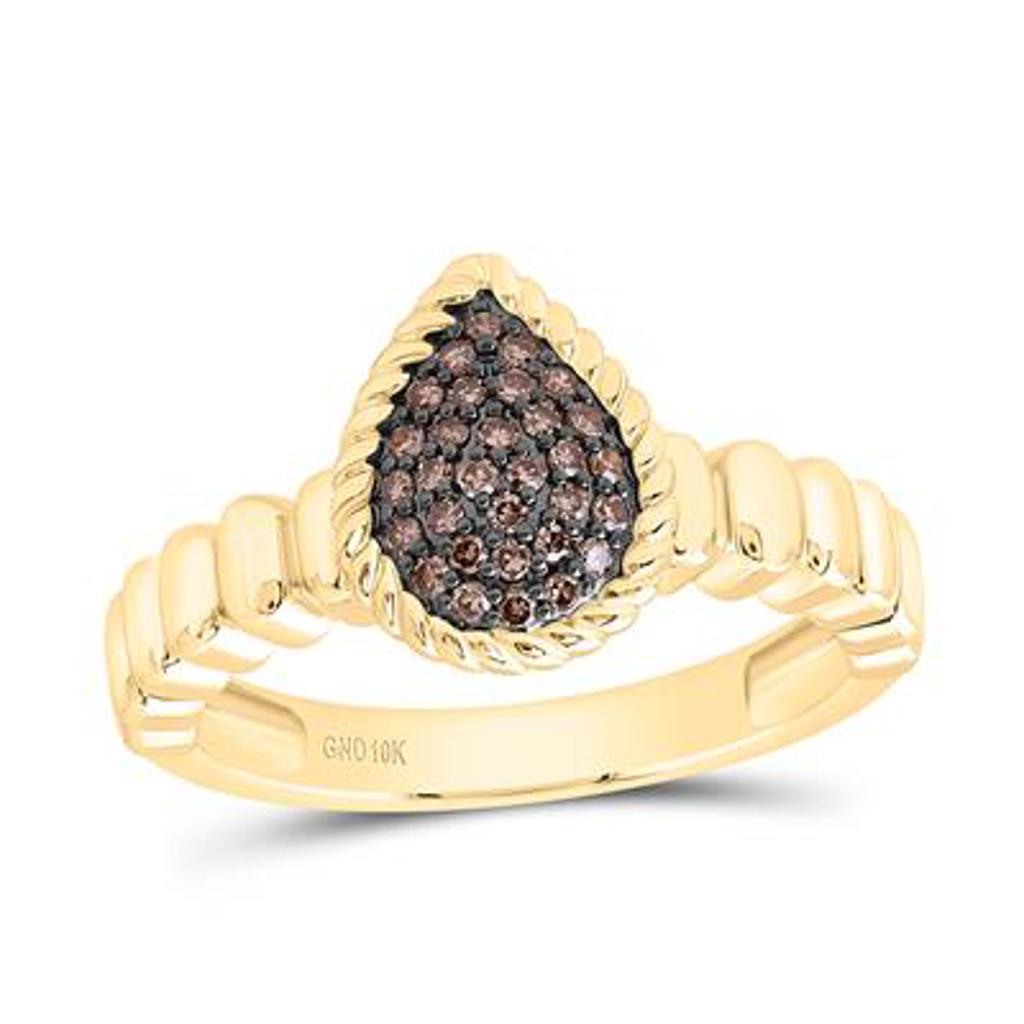 10K Yellow Gold Pear-Shaped Cognac Diamond Ring 1/5ctw