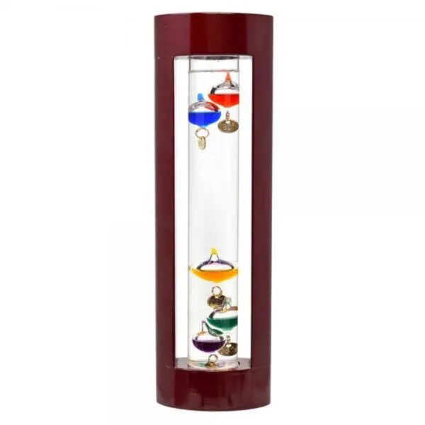 Ready to upgrade your décor and your daily ritual with a piece that’s both beautiful and useful? Choose the 11-inch Galileo thermometer with cherry wood finish and enjoy the satisfaction of a refined, meaningful object that adds depth to any room. Add it to your home or office today, and let form and function work in graceful harmony.