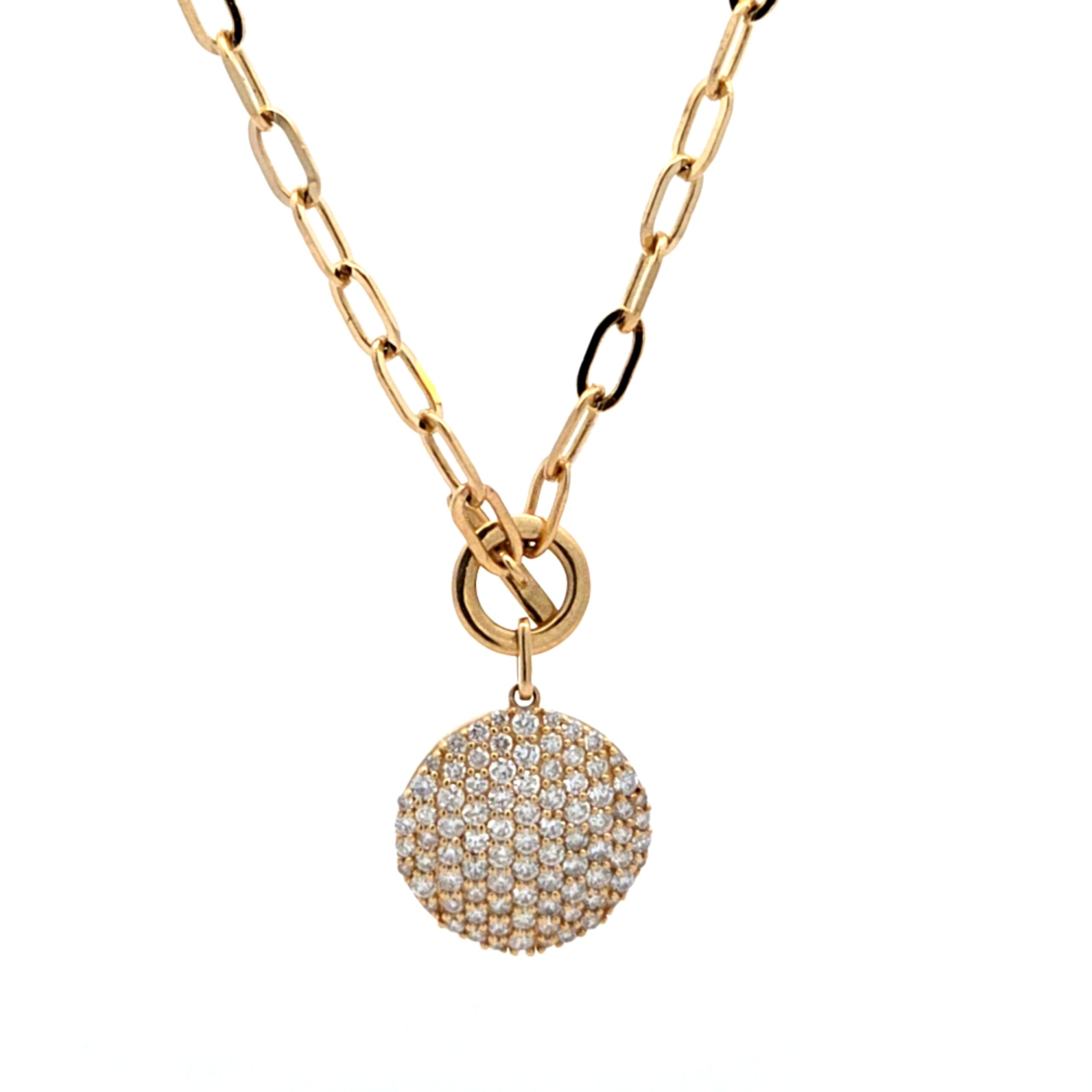 Crafted meticulously from high-quality 14K gold, this necklace features striking pave diamonds that collectively weigh 0.72 carats. The unique paper clip T-bar design of the necklace adds a modern twist, allowing you to showcase your fashion-forward sensibility. Moreover, the delicate settings of the diamonds ensure that each stone reflects light beautifully, creating a dazzling display that captures attention.