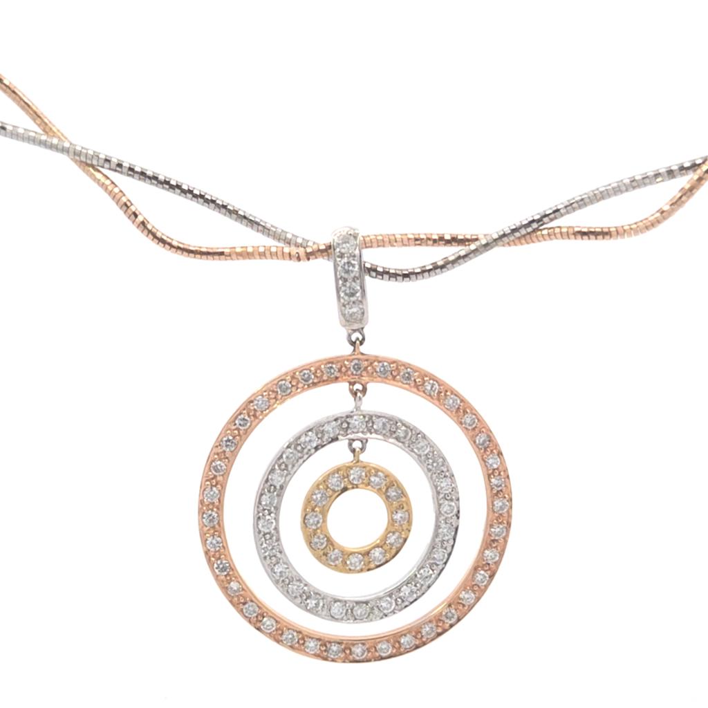 - Product Name: 14K Tri-Color 3-Circle Diamond Necklace, 0.75 CTW