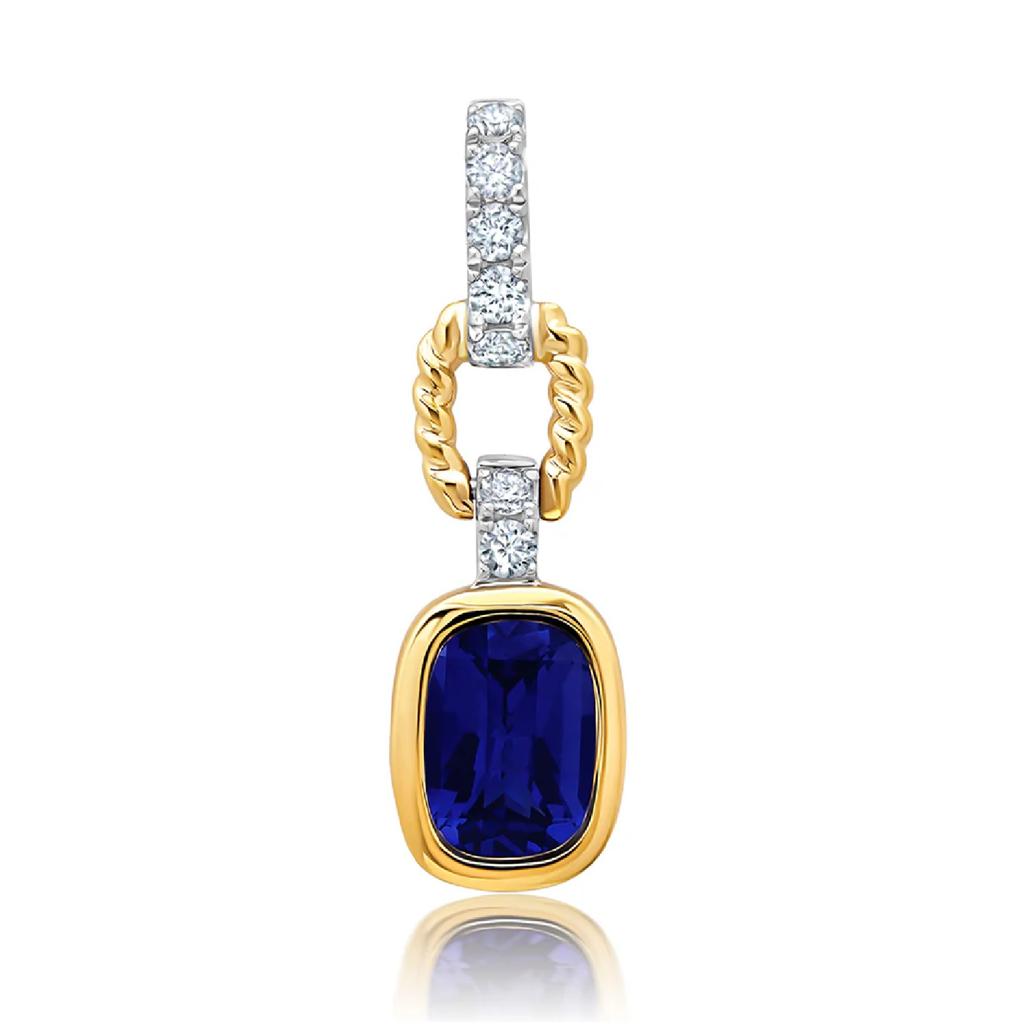 Crafted in 14k two-tone gold with a lab-created sapphire and diamond accents totaling 0.13ctw. Certain details—such as chain length, clasp type, sapphire color/shape, and diamond grading—are not listed here. Nevertheless, our specialists are happy to provide current specifications and availability so you can purchase with confidence.