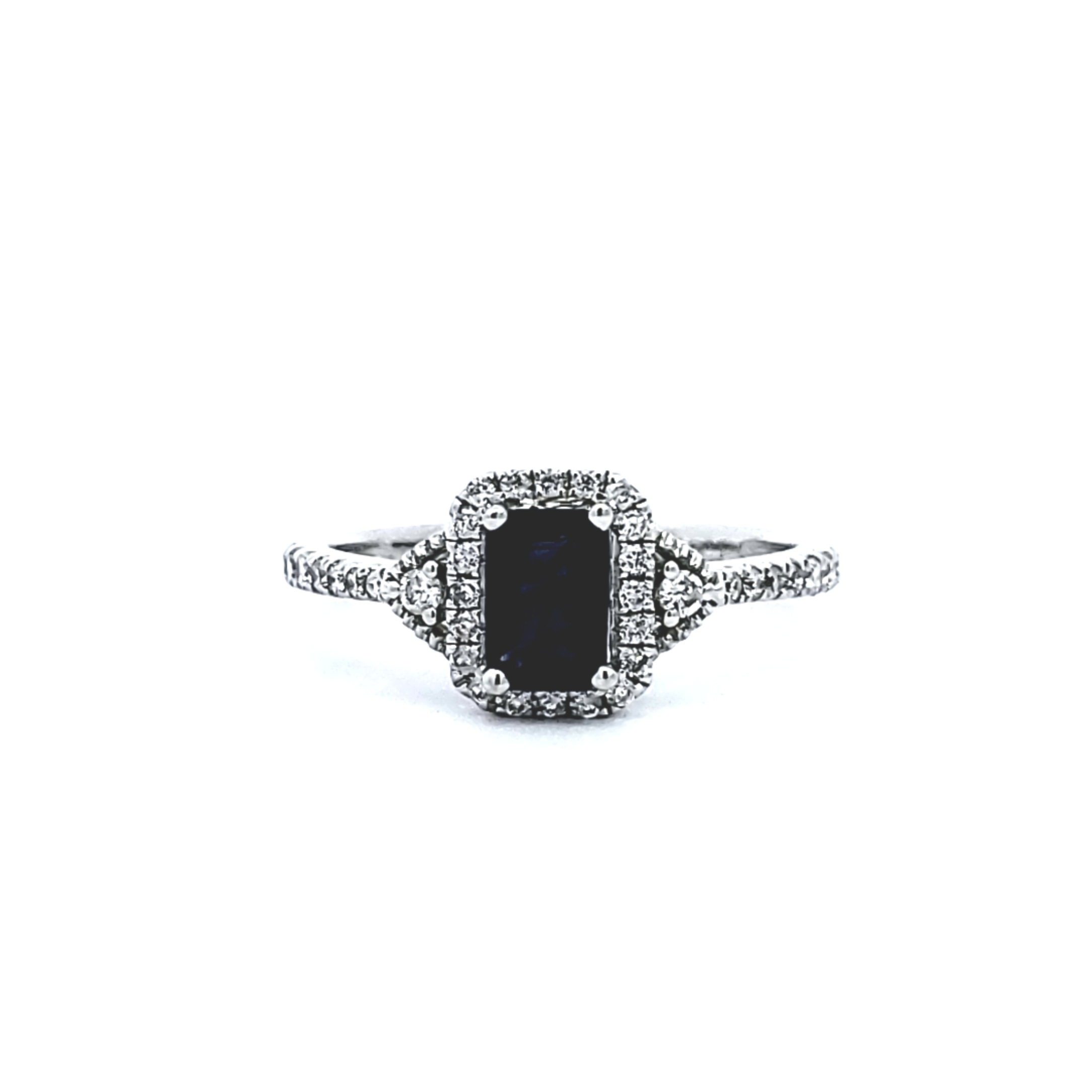 This elegant 14k White Gold Sapphire Diamond Ring appeals to a diverse audience: