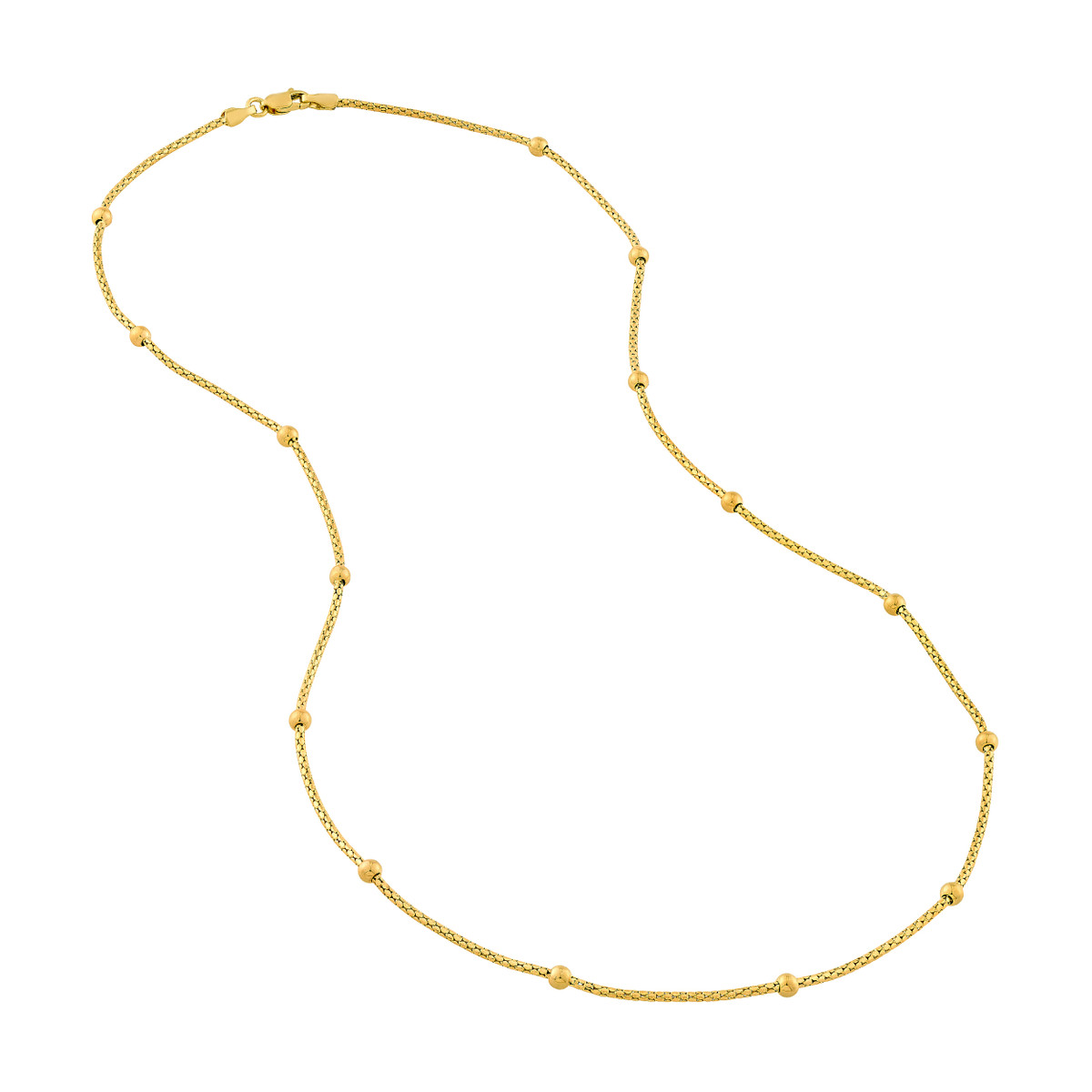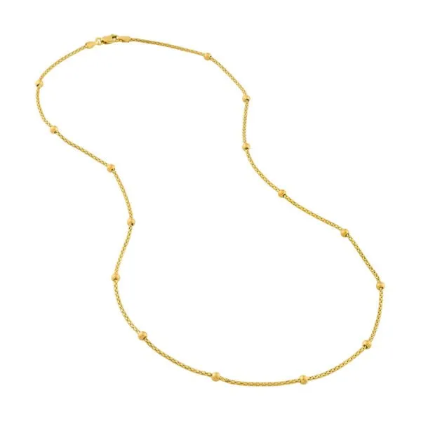 14K Yellow Gold 1.35mm Beaded Popcorn Station Necklace