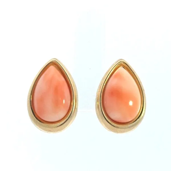 Discover Elegance with Our 14K Yellow Gold Coral Pear Shaped Earrings