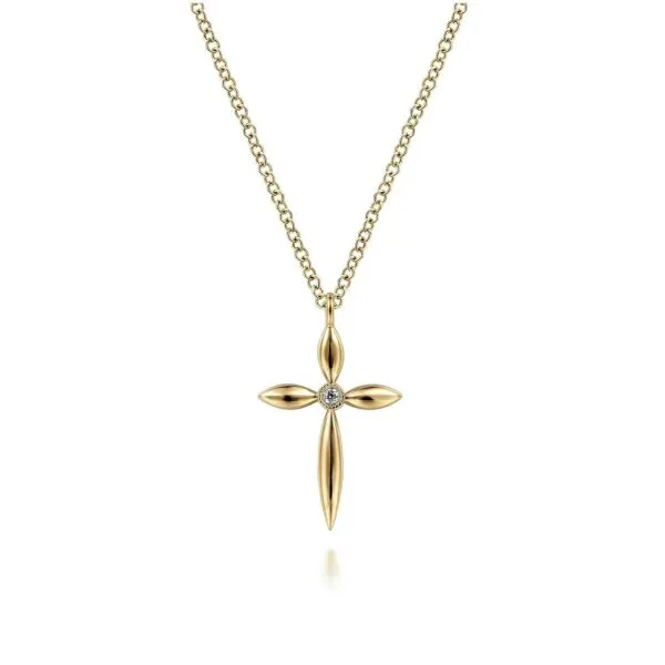 14k Yellow Gold Pointed End Cross Pendant Necklace with .01ctw Diamonds