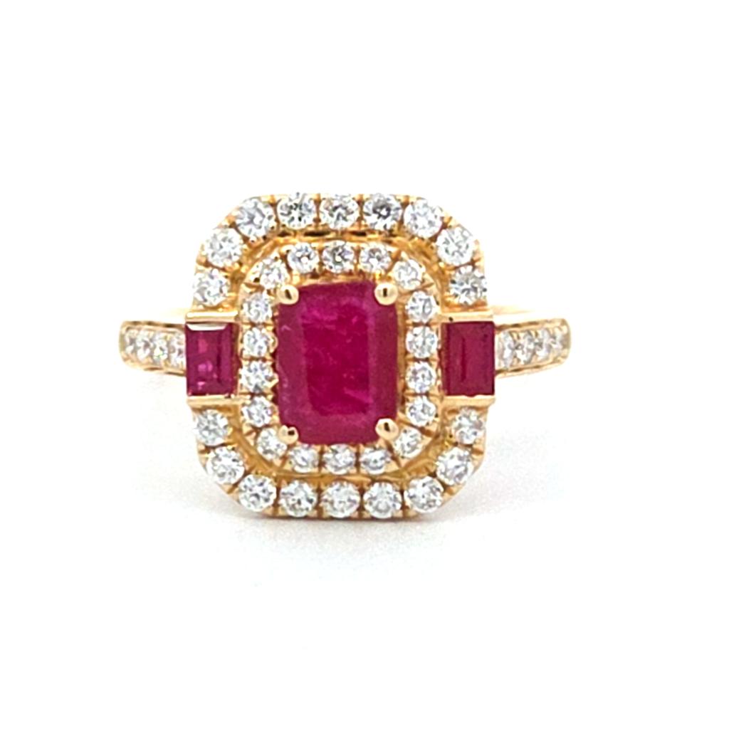 This diamond ruby ring with square halo is designed keeping the modern individual in mind. The sleek lines of the square halo setting surround the adorned gem, making it suitable for a variety of personal styles. Moreover, here are some additional features: