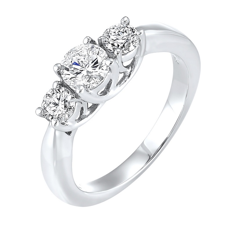 Celebrate your past, present, and future with this timeless 14k white gold engagement ring featuring three round brilliant cut diamonds totaling .25 carat.