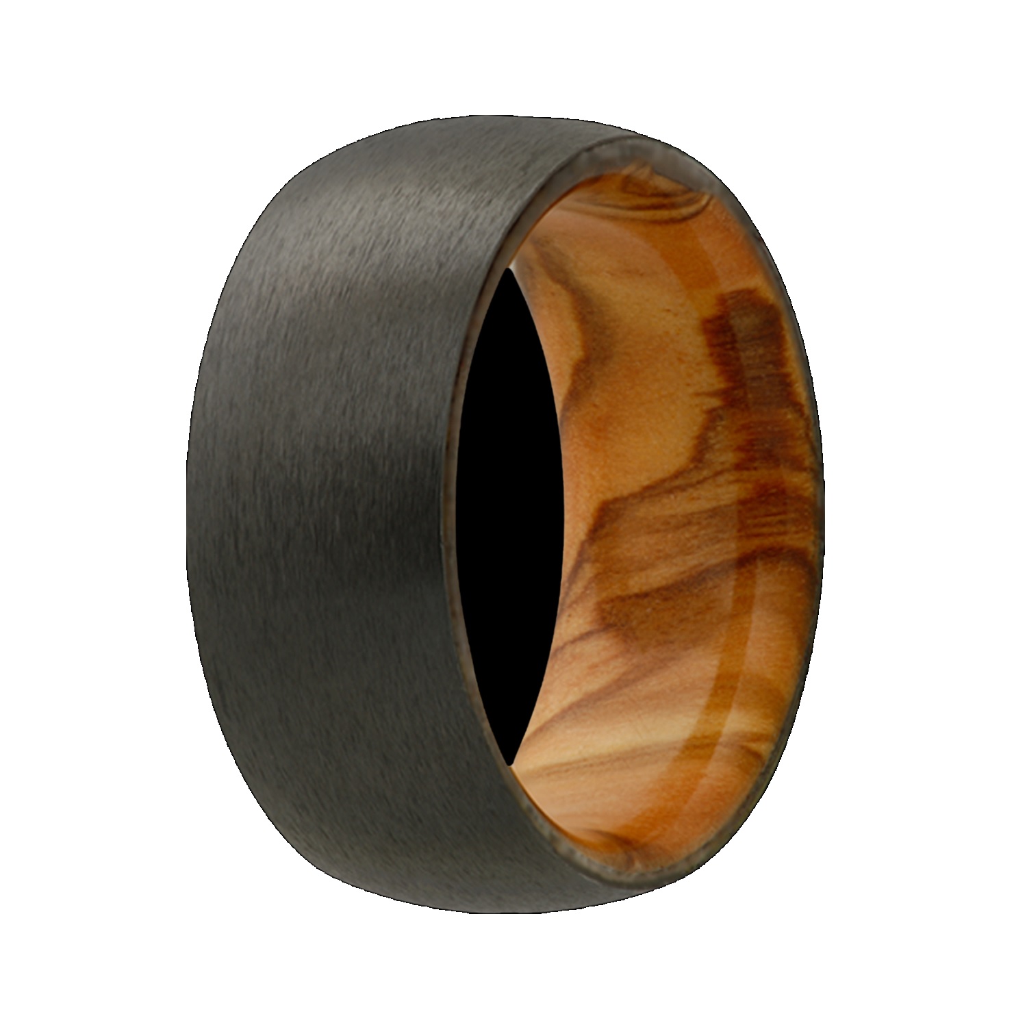 Discover the Elegance of Our 7mm Satin Finish Zirconium Wedding Band with Wood Sleeve