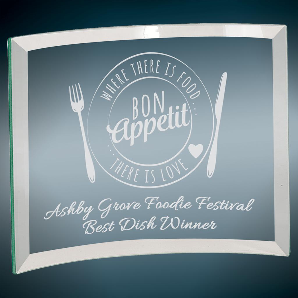 8×6 Beveled Jade Glass Crescent Award with Engraving