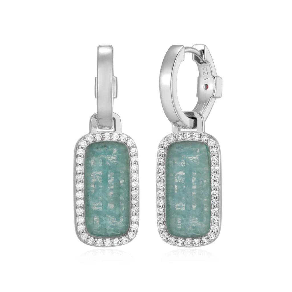 Allure Amazonite & CZ Rectangular Dangle Hoop Earrings