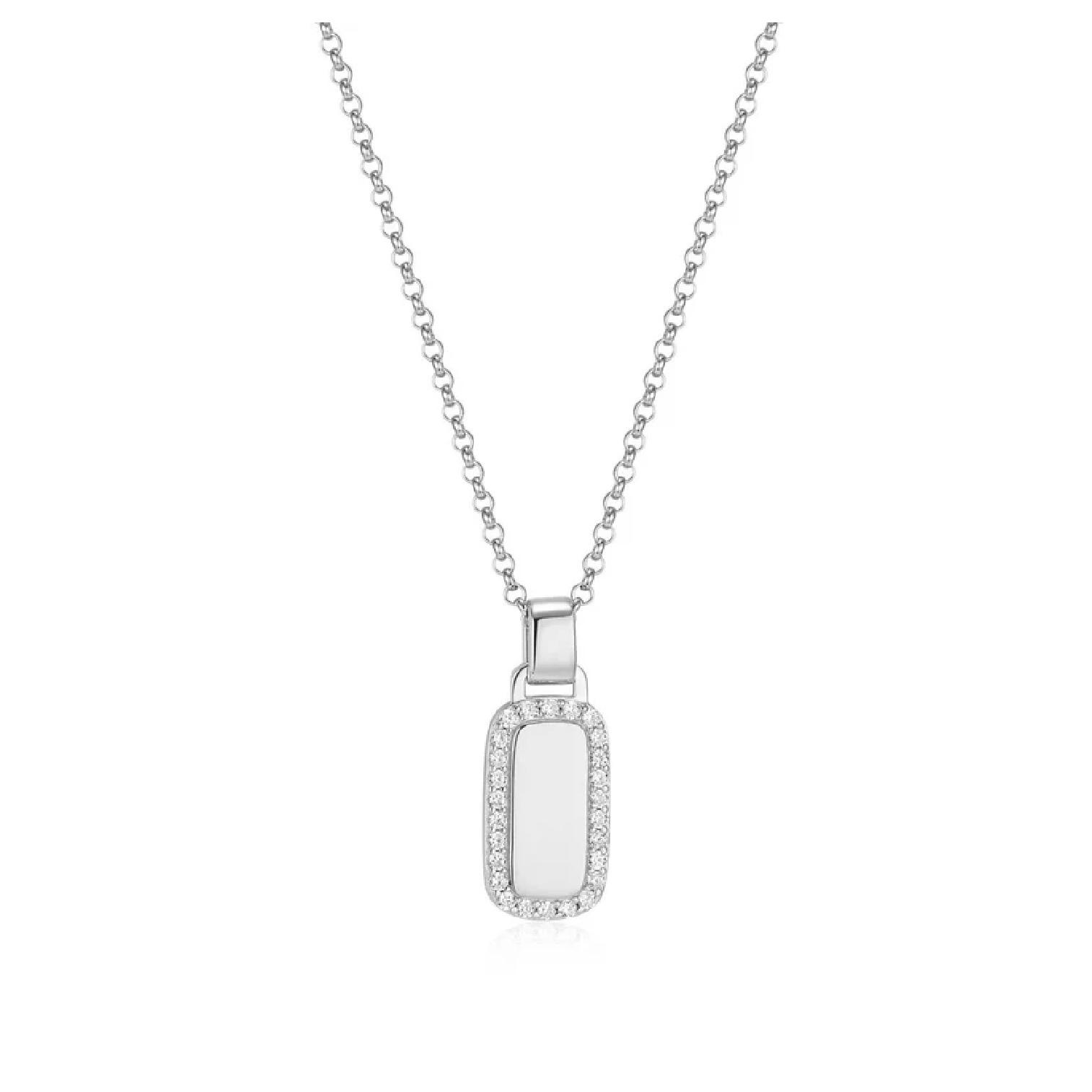 Allure White CZ Rectangular Drop Pendant on 17″ Rolo Chain with 3″ Extender