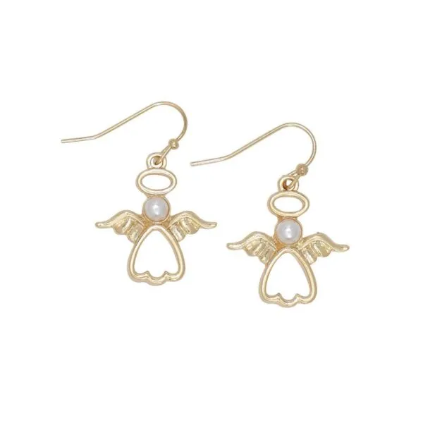 Discover the Elegance of Angel Dangle Earrings with Pearl Accents in Yellow Gold