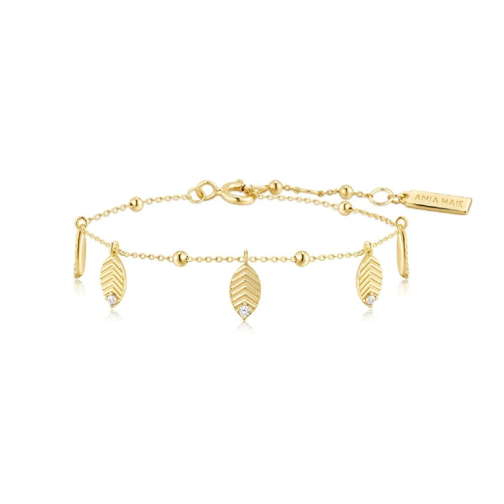 Ania Haie Yellow Gold-Plated CZ Leaf Station Bracelet: A Delicate Everyday Sparkle