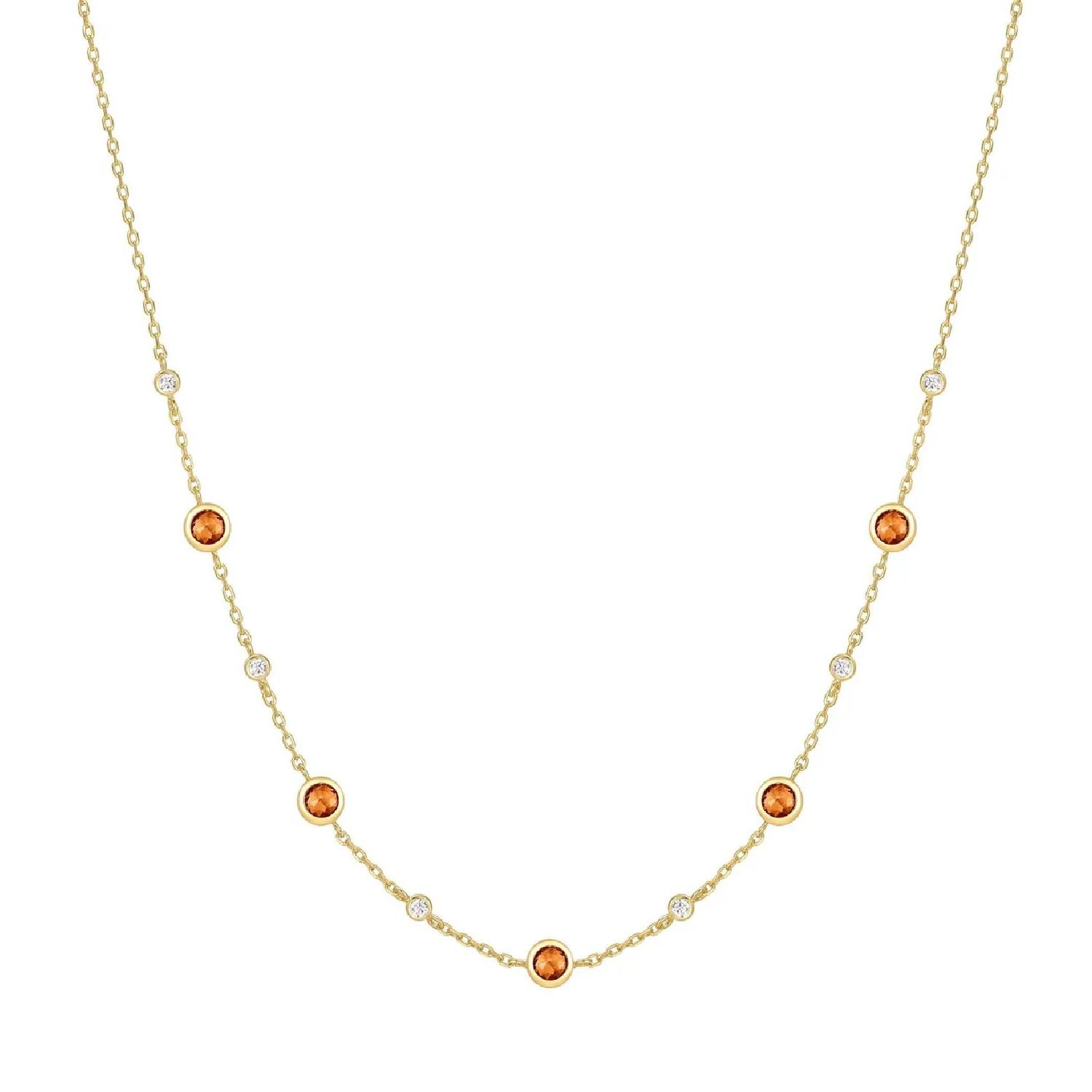 - Design: A trendy station necklace featuring eye-catching orange nano gemstones.