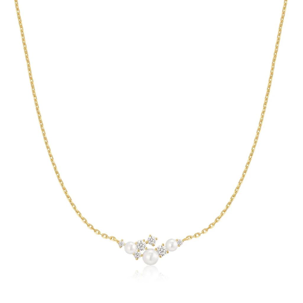 Ania Haie Yellow Gold-Plated Pearl & CZ Cluster Necklace: Timeless Glow with a Modern Twist