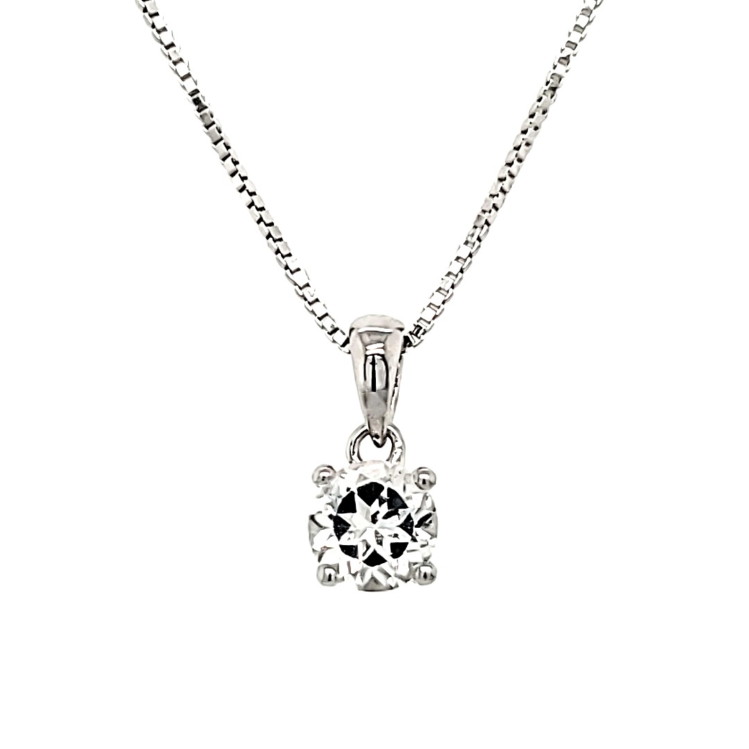 Elegance and Charm: Birthstone Necklace with Round White Topaz in Sterling Silver