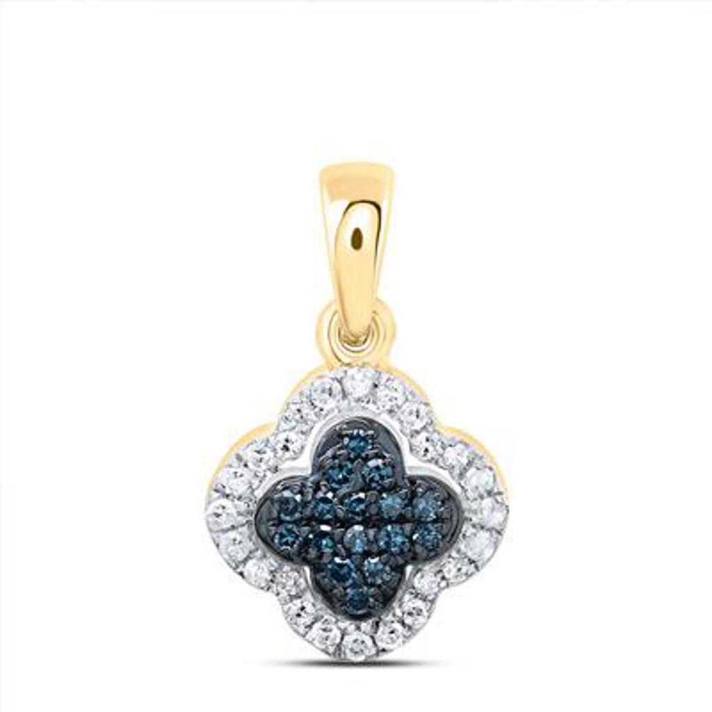 Blue & White Diamond Clover Necklace 10K Yellow Gold, 1/6 ctw