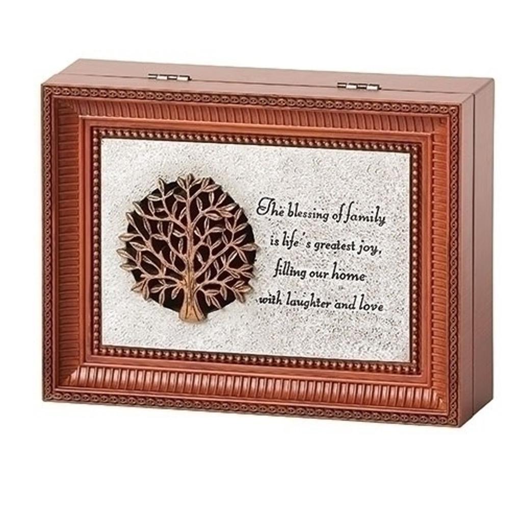 Brown Family Blessings Music Box makes a thoughtful gift and a timeless giftware accent from Hoppe Jewelers.