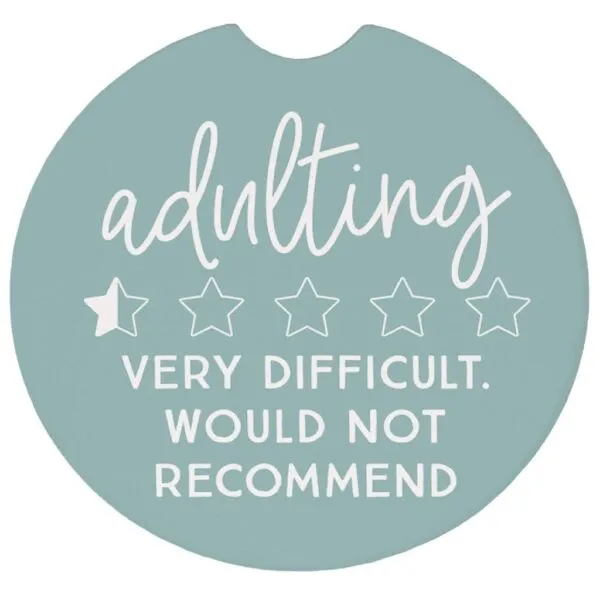 Ceramic Car Coaster – “Adulting Is Very Difficult” | Hoppe Jewelers