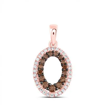 Chocolate and White Diamond Oval Halo Drop Pendant in 14k Rose Gold