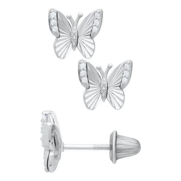 Cubic Zirconia Butterfly Stud Earrings in Sterling Silver