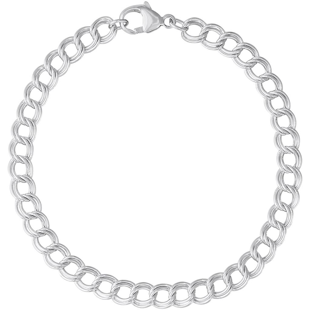 Double Oval Link Charm Bracelet, 7 Inch Sterling Silver