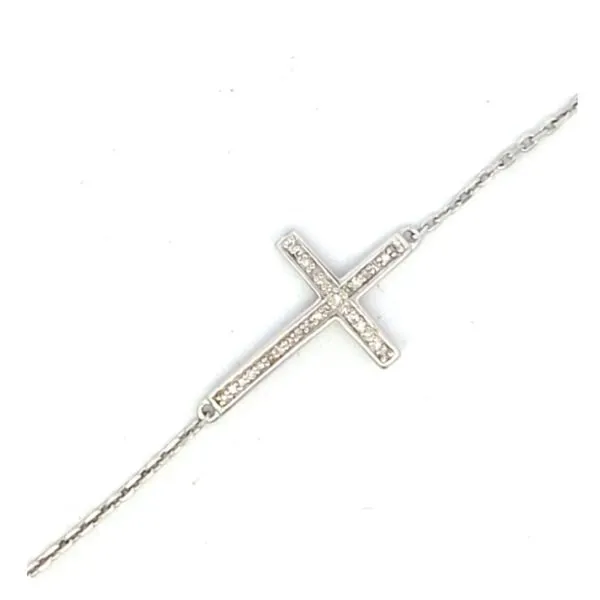 Discover the Elegant East/West Cross Bracelet with .12ctw Round Diamonds in Sterling Silver
