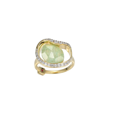 Elle “Treasure” Ring with Amazonite and Crystal in Yellow Gold & Silver