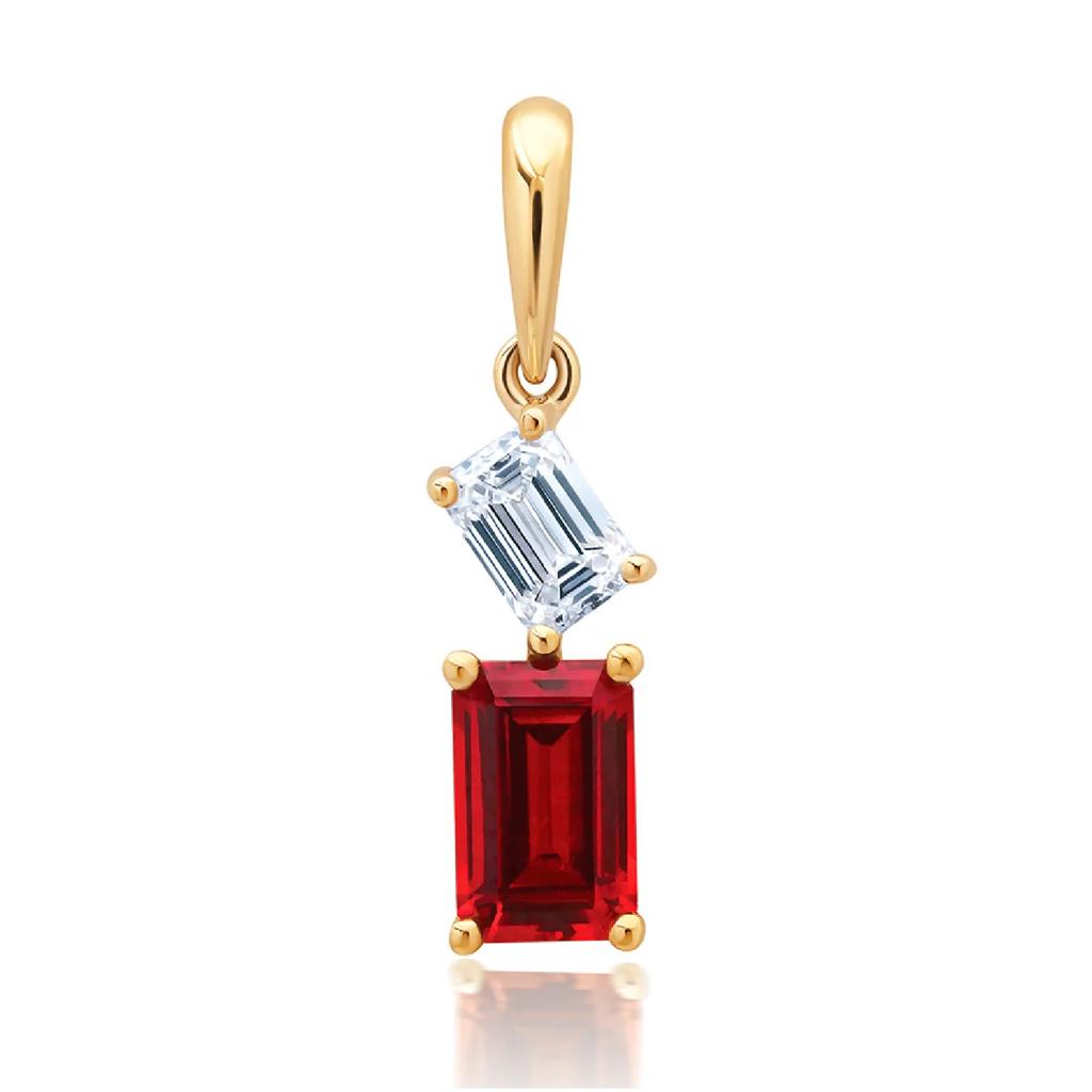 Emerald-Cut Lab Ruby & .25ctw Lab Diamonds Necklace in 14k Gold — The Lab Grown Ruby Necklace You’ll Reach For