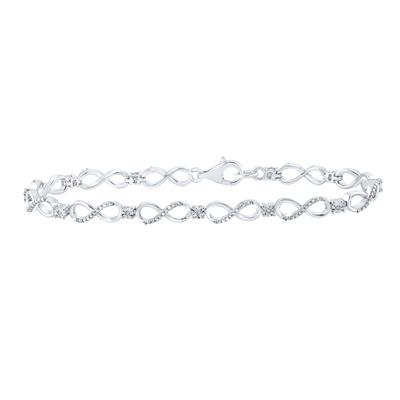 Experience timeless elegance with this captivating sterling silver bracelet, boasting a sequence of endless infinity links. Embellished with 10 round diamonds totaling 0.03 carat weight, this piece amazingly combines romance with subtle sophistication. The clean finish and sparkling details mesmerously symbolise everlasting love, making it a perfect gift for your beloved.