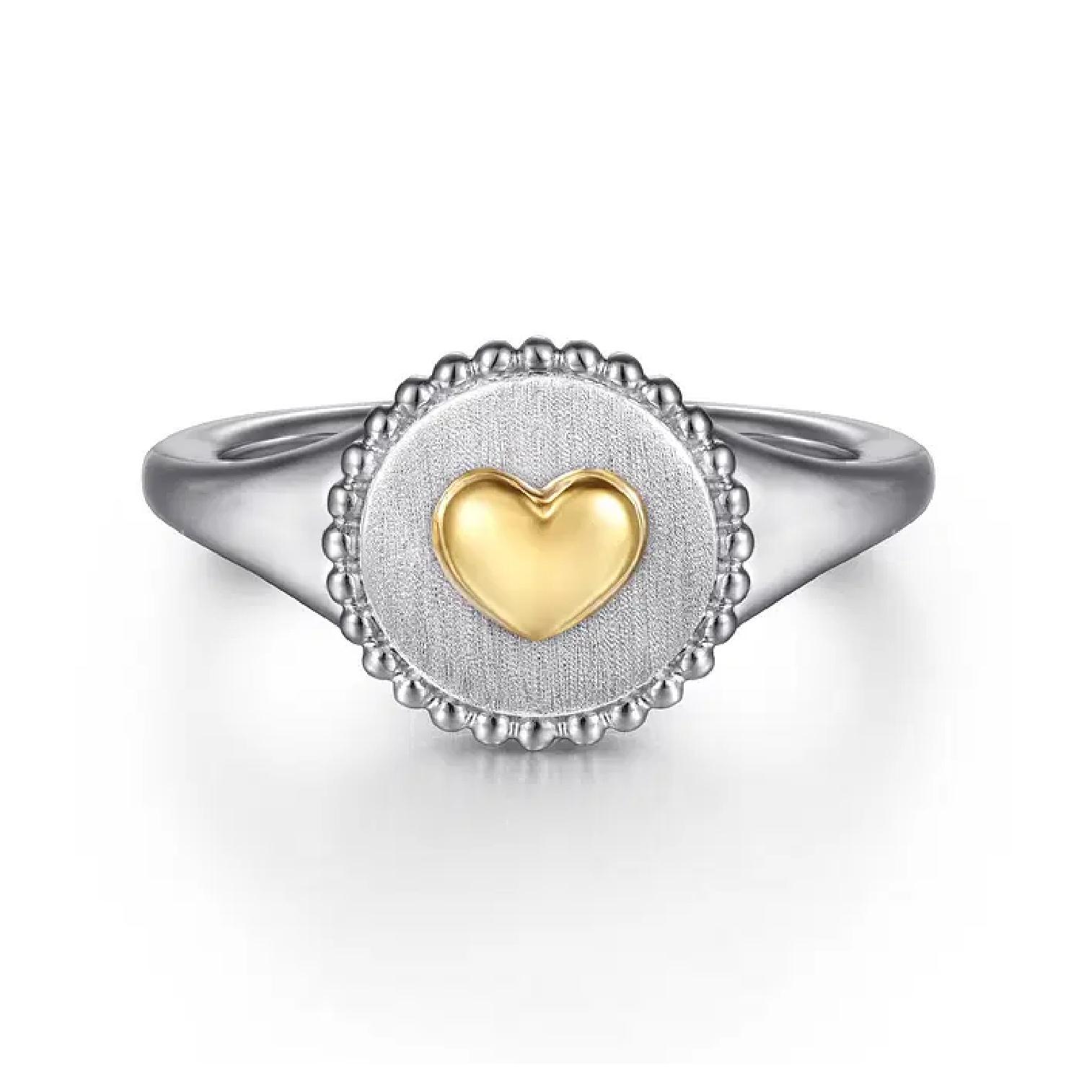 Introducing the exquisite Gabriel Bujukan Heart Medallion Ring, a stunning fusion of artistry and elegance crafted for those who cherish the meaning of love. This luxurious ring, fashioned from a harmonious blend of 14k yellow gold and silver, serves as an ideal symbol of affection, making it the perfect choice for engagements, significant gifts, or simply as an indulgent addition to your jewelry collection.