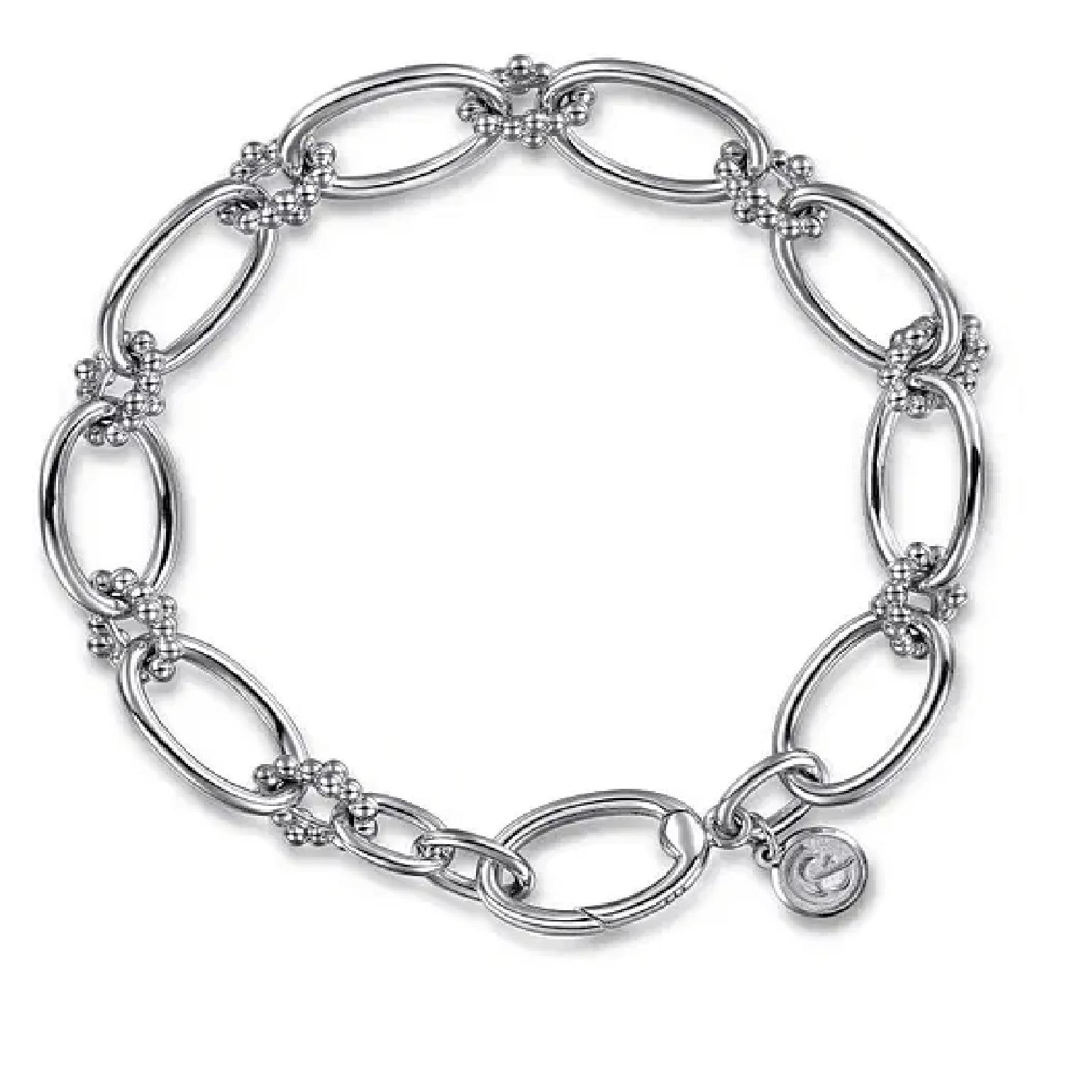 Elevate your jewelry collection with the exquisite Gabriel Bujukan Oval Link Bracelet, masterfully crafted in sterling silver. Designed to adapt flawlessly to a variety of outfits, this 7.5-inch bracelet serves more than just an aesthetic purpose—it fulfills the need for a versatile piece that highlights your unique style while providing timeless elegance.
