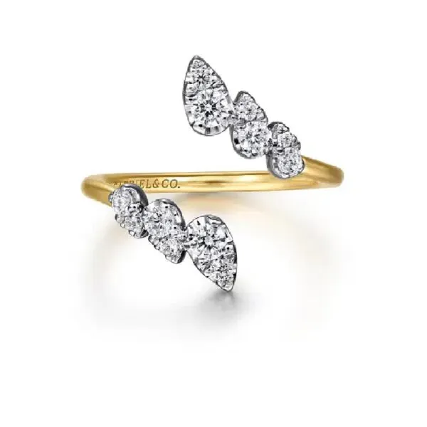 Gabriel Bypass Fashion Ring with .40ctw Round Diamonds in 14k Yellow Gold is the epitome of modern jewelry craftsmanship. This exquisite ring serves not only as a glamorous accessory but also symbolizes love and commitment, making it an ideal choice for engagements or special gifts for milestones.