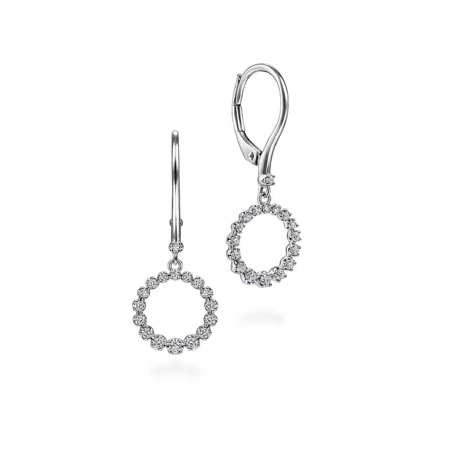 Discover the perfect blend of sophistication and style with the Gabriel Open Circle Drop Earrings, designed to elevate any outfit. Crafted from luxurious 14k White Gold and adorned with exquisite .28ctw Round Diamonds, these earrings are not just an accessory; they are a statement of elegance.
