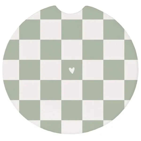 While spills and condensation rings are a daily hassle, the right car coaster makes upkeep effortless. This green checkered heart car coaster sits neatly in your cup holder to help catch minor drips and crumbs, so you spend less time scrubbing sticky residue and more time enjoying the ride. In addition, the smooth ceramic surface wipes clean in seconds, helping your interior look tidy with minimal effort.