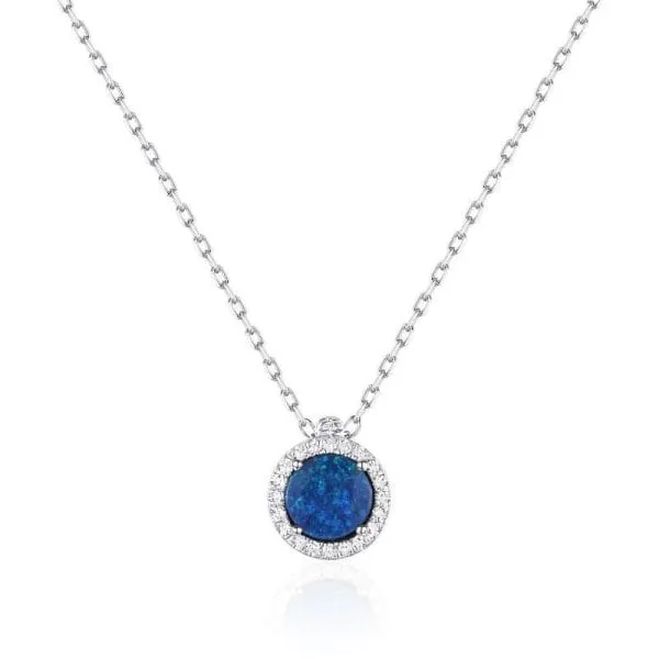 Exquisite Halo Necklace with Opal and .43ctw Round Diamonds