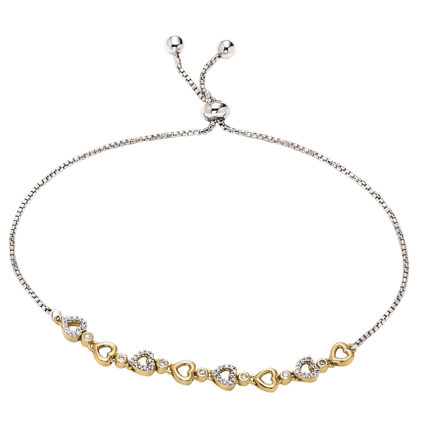 This beautiful two tone heart bolo bracelet is perfect for any occasion. Crafted with sterling silver and 0.12 ct of diamonds, it’s sure to add a touch of sparkle to your look.