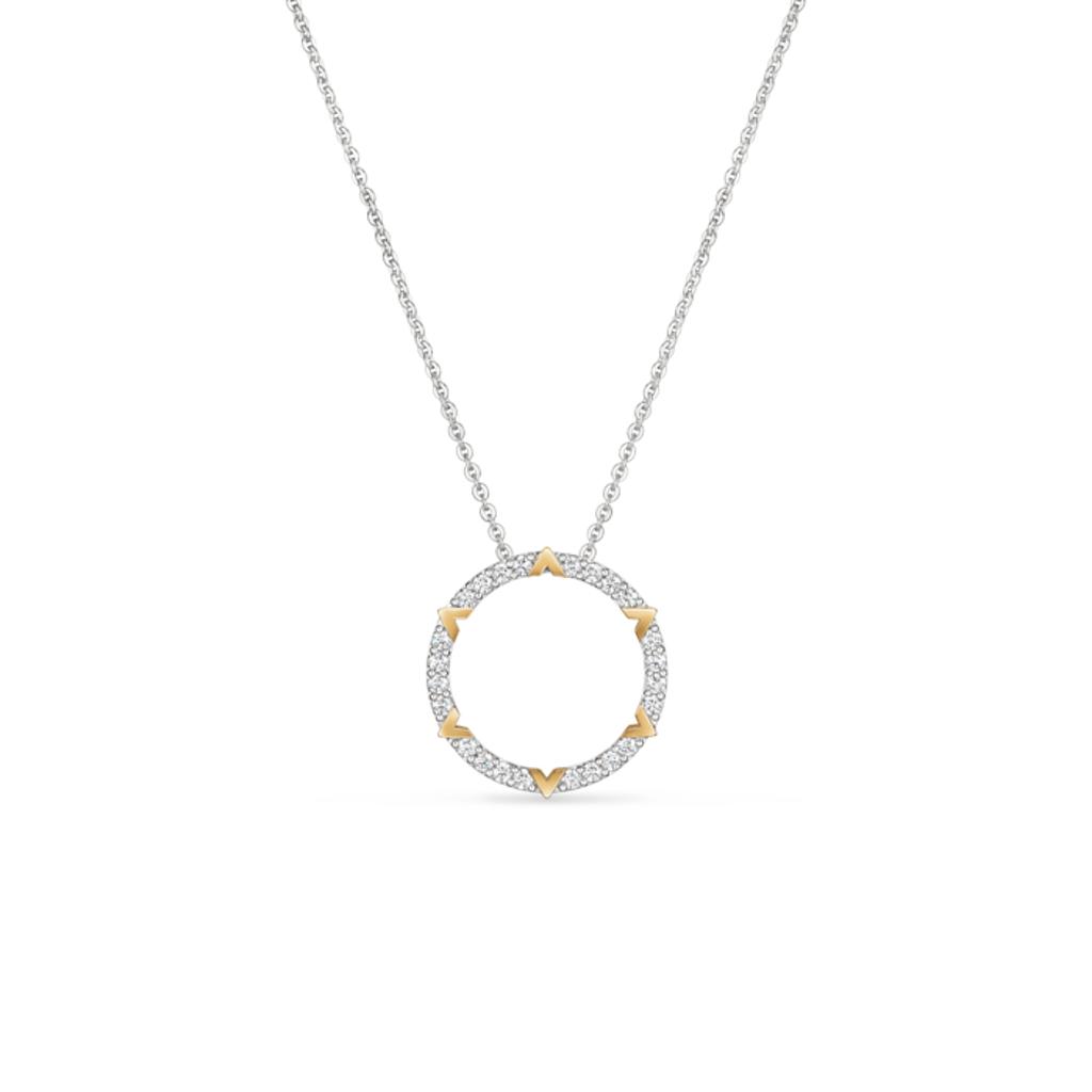 Graceful, bright, and endlessly wearable, the Hearts On Fire Copley Pavé Pendant in 18k two‑tone gold brings refined sparkle to every day. With a total diamond weight of .51 carats in a delicate pavé halo, this designer pendant delivers a luminous glow that reads modern yet timeless. Moreover, its two‑tone metal palette harmonizes with both white and yellow gold pieces you already own, creating an effortless bridge between your favorite jewelry looks. If you’ve been searching for a single necklace that transitions from desk to dinner—without ever feeling overdone—this pendant solves that style puzzle beautifully.