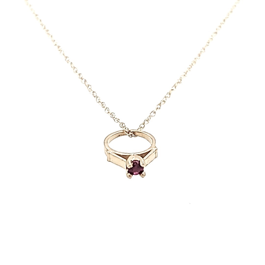 July Birthstone Ring Necklace with Ruby in 10k White Gold
