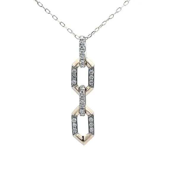 Welcome to Hoppe Jewelers, where elegance meets contemporary design. Introducing our stunning Link Drop Necklace with .20ctw Round Diamonds in 14k Yellow Gold. This exquisite piece combines the timeless allure of gold with the modern sparkle of diamonds, making it a must-have for your jewelry collection.