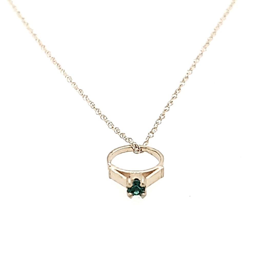 This 10k white gold Emerald Ring Charm with Chain is a stunning piece of jewelry. The emerald stone is set in a beautiful gold band and is accompanied by a matching gold chain. It’s the perfect accessory for any special occasion.