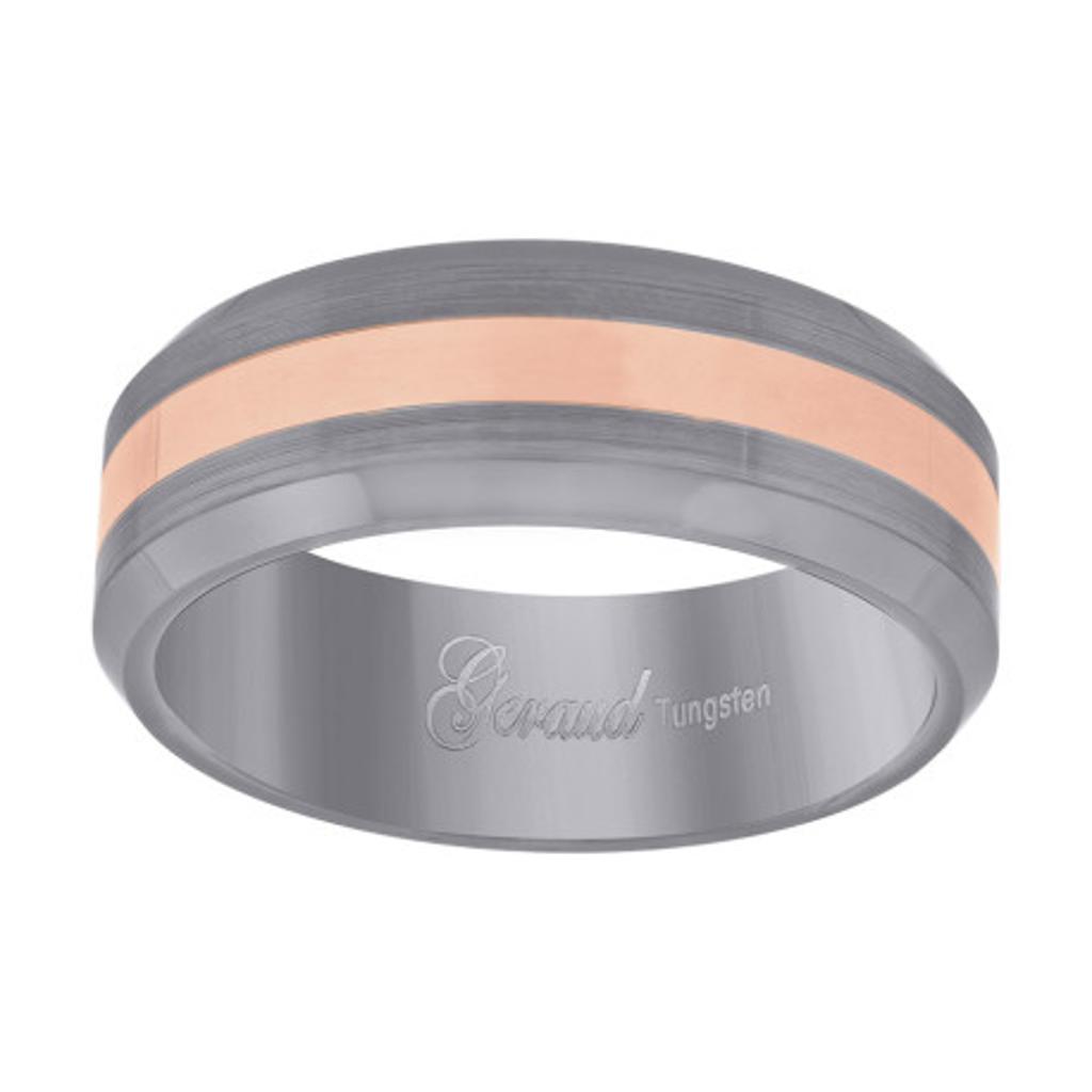 Men’s 8mm Tungsten Carbide Beveled Wedding Band with Rose Stripe