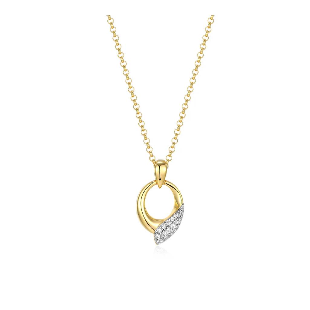 Discover the exquisite Open Circle and Teardrop Pendant Necklace adorned with shimmering Cubic Zirconia (CZ) accents, meticulously crafted in luxurious yellow gold plating. This captivating piece from Hoppe Jewelers offers not just a fashion statement but also an expression of your individuality and style.