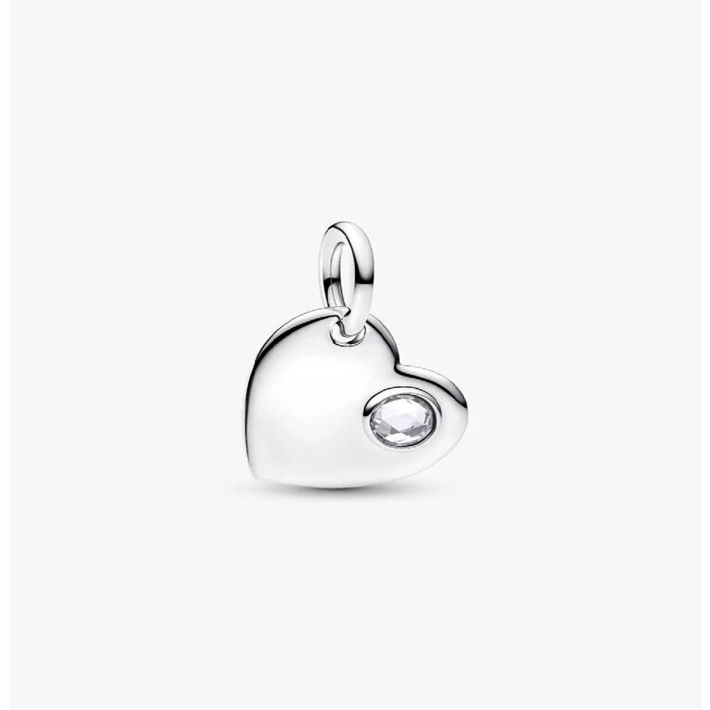 Pandora Engravable Heart Clear CZ April Birthstone Charm