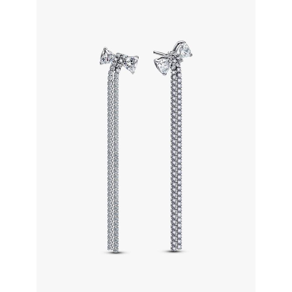 Pandora pave bow drop earrings deliver a graceful finish with a delicate bow motif and shimmering pavé detailing. This elegant pair of drop earrings transitions effortlessly from day to night and makes a charming gift. Sold as a pair at Hoppe Jewelers, they showcase signature Pandora style in every wear.