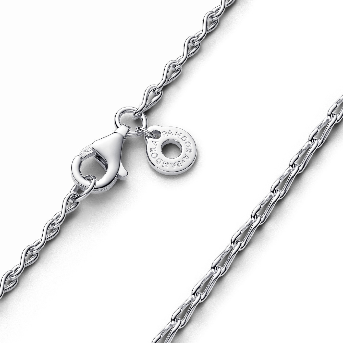 The unique figure 8 chain design of this Sterling Silver Necklace from Pandora presents a contemporary look that encapsulates classic elegance. Unlike traditional chain designs, the figure 8 configuration creates a visually captivating effect, drawing attention and sparking intrigue. This necklace is not just an accessory; it’s a statement piece, ideal for anyone looking to express their individuality through jewelry.