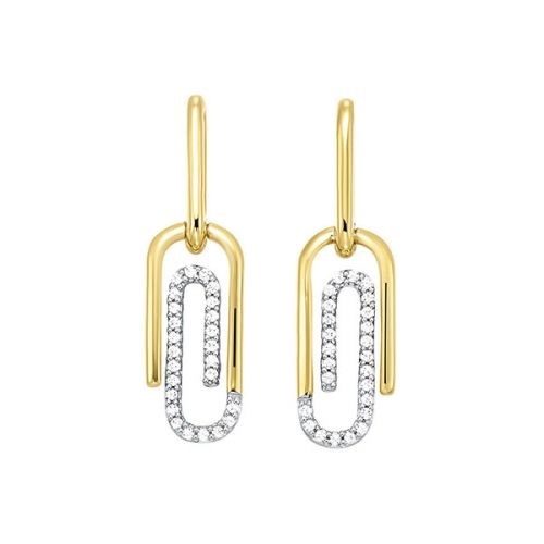 Paperclip Drop Earrings with .14ctw Round Diamonds in 10k Yellow Gold