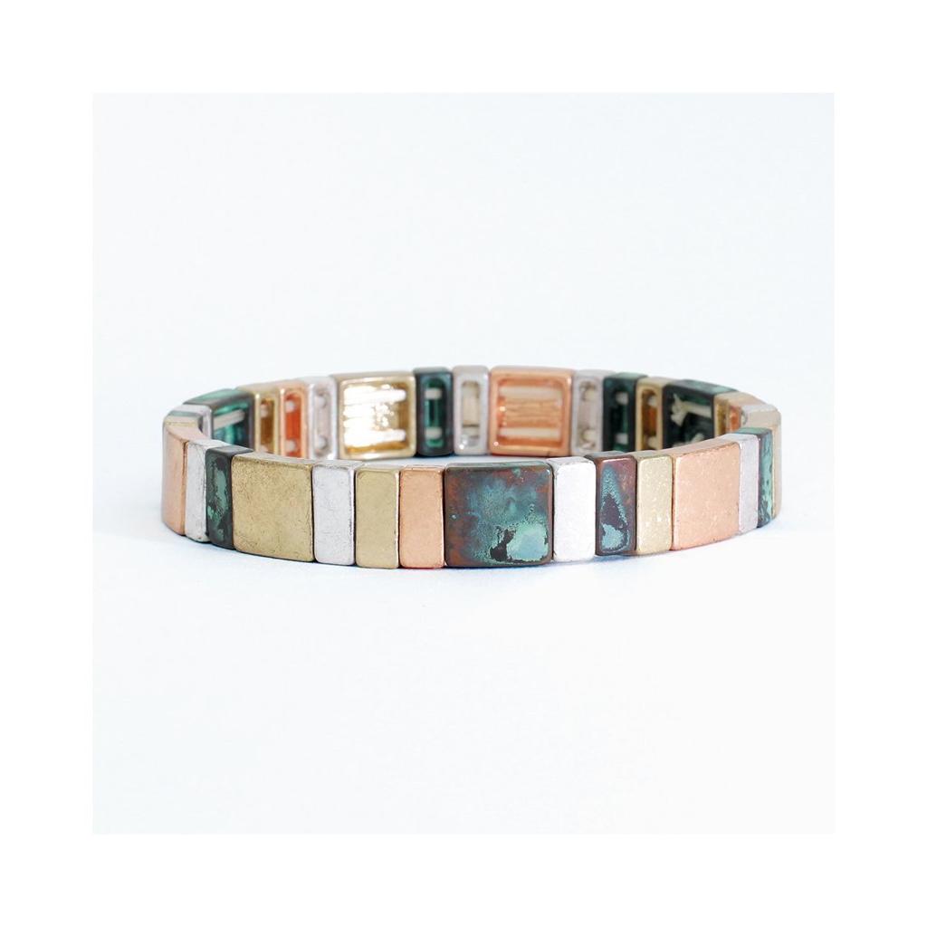 The beauty of a patina finish lies in its depth. It catches light in a nuanced way—softly, yet noticeably—so your wrist looks polished without feeling overdone. Moreover, the multi-tone pattern introduces visual rhythm and versatility; consequently, the bracelet complements both warm and cool palettes, leather and linen, denim and silk. The finish offers the character of a well-loved treasure, while the stretch construction keeps it refreshingly modern. Therefore, whether your style leans classic, bohemian, or minimalist, this piece plays the part and pulls everything together.