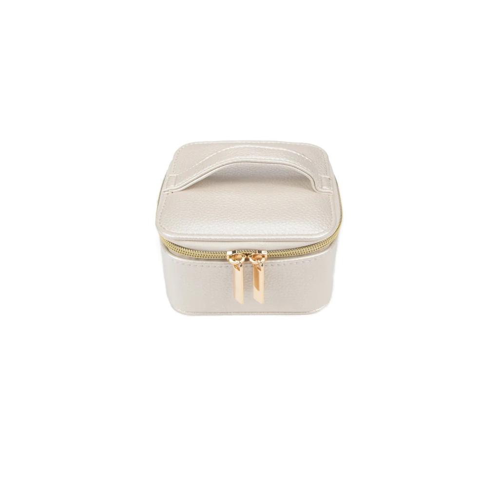 Pearl White Zippered Jewelry Travel Case with Pouch